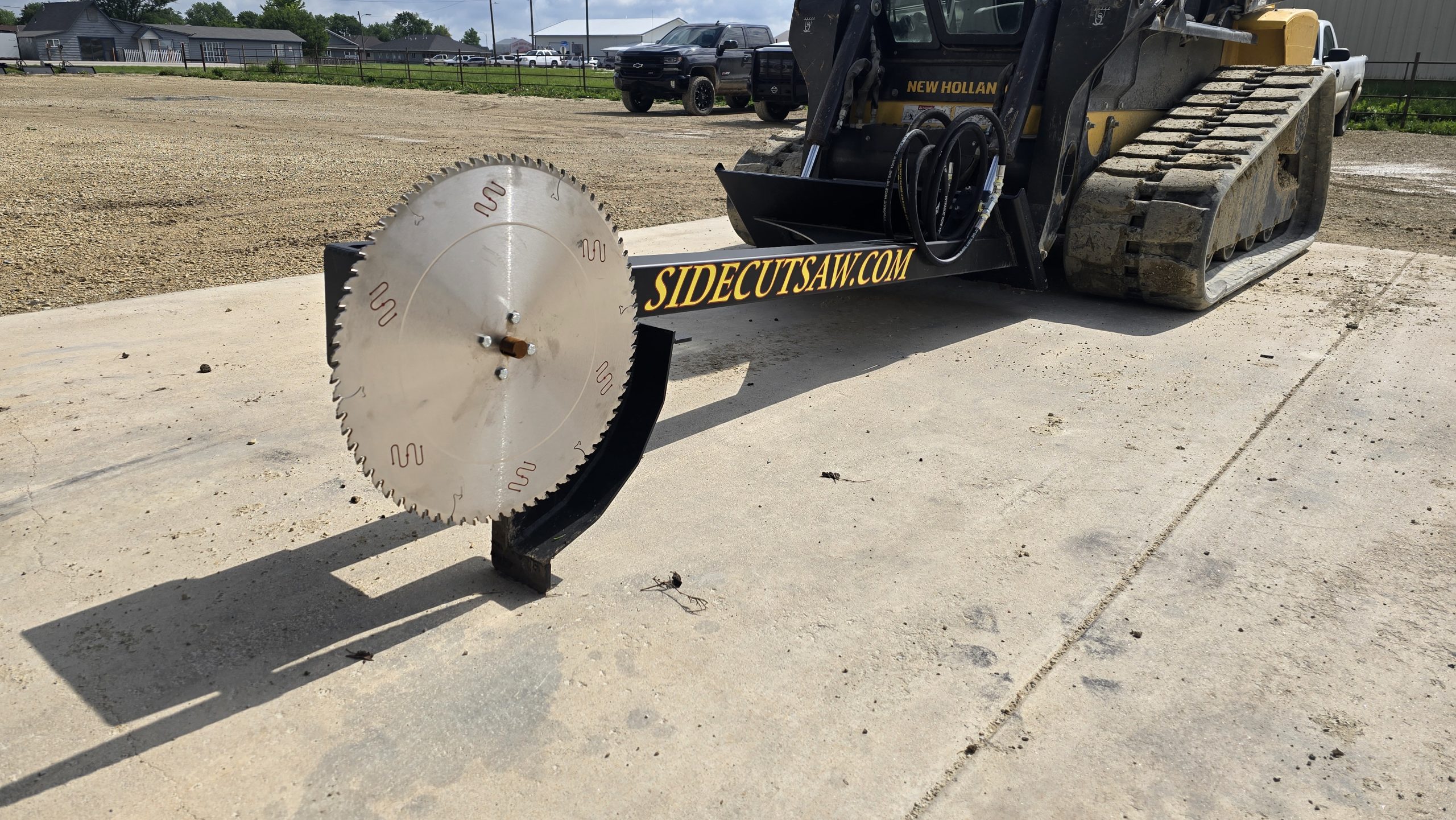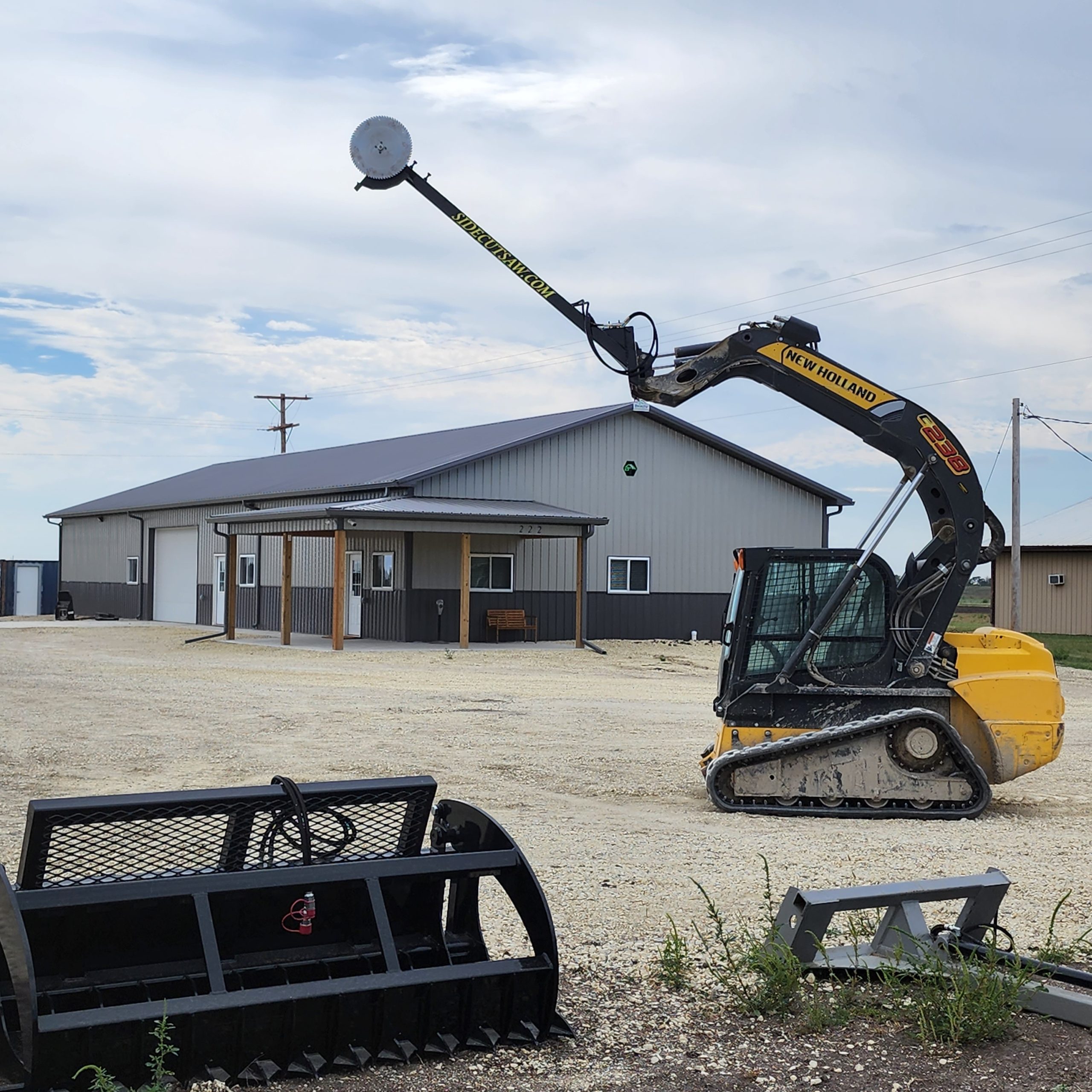 Sidecut Saw is the ultimate solution for clearing overhead branches and thick brush—all from the comfort of your skid steer or tractor equipped with a bucket. With an average cutting reach of approximately 20 feet, this attachment tackles high, hard-to-reach limbs with ease.